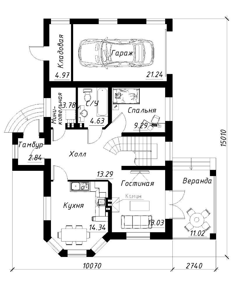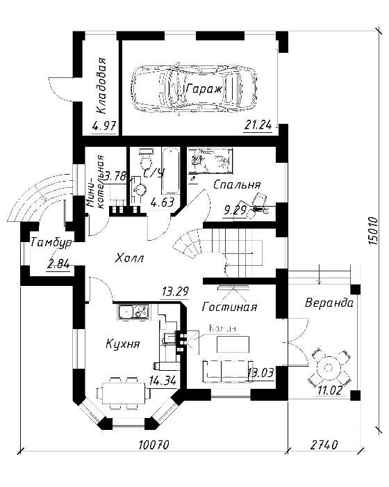 Проект содержит три раздела – Архитектурный, Конструктивный и Инженерный (Водоснабжение, Отопление, Вентиляция, Канализация, Электроснабжение) + Пояснительная записка