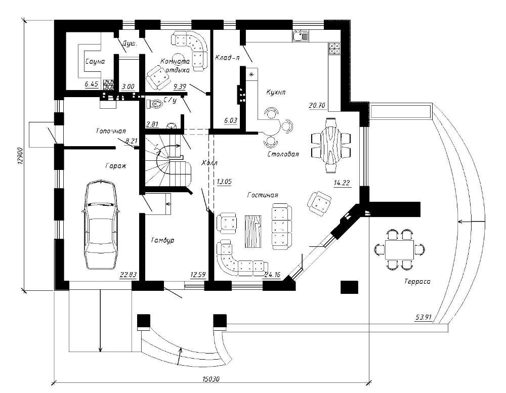 Проект содержит три раздела – Архитектурный, Конструктивный и Инженерный (Водоснабжение, Отопление, Вентиляция, Канализация, Электроснабжение) + Пояснительная записка