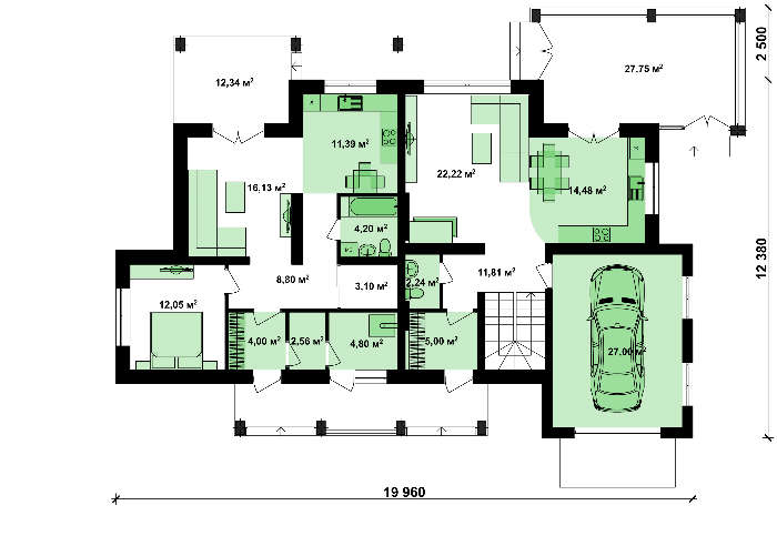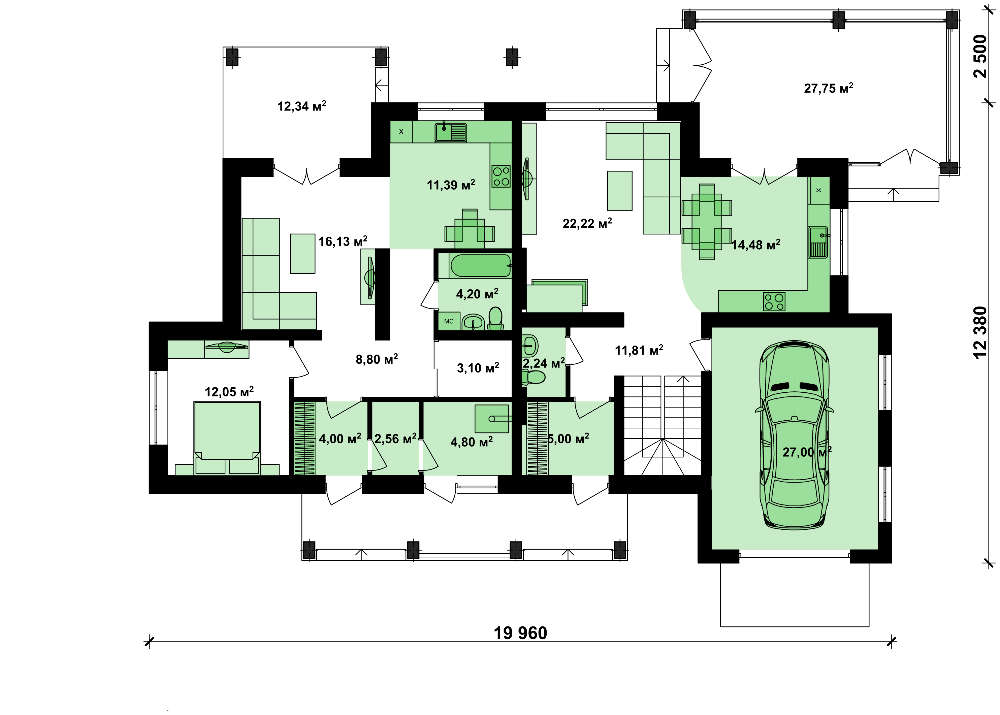 Проект содержит три раздела – Архитектурный, Конструктивный и Инженерный (Водоснабжение, Отопление, Вентиляция, Канализация, Электроснабжение) + Пояснительная записка
