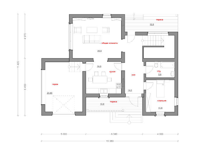 Проект содержит три раздела – Архитектурный, Конструктивный и Инженерный (Водоснабжение, Отопление, Вентиляция, Канализация, Электроснабжение) + Пояснительная записка