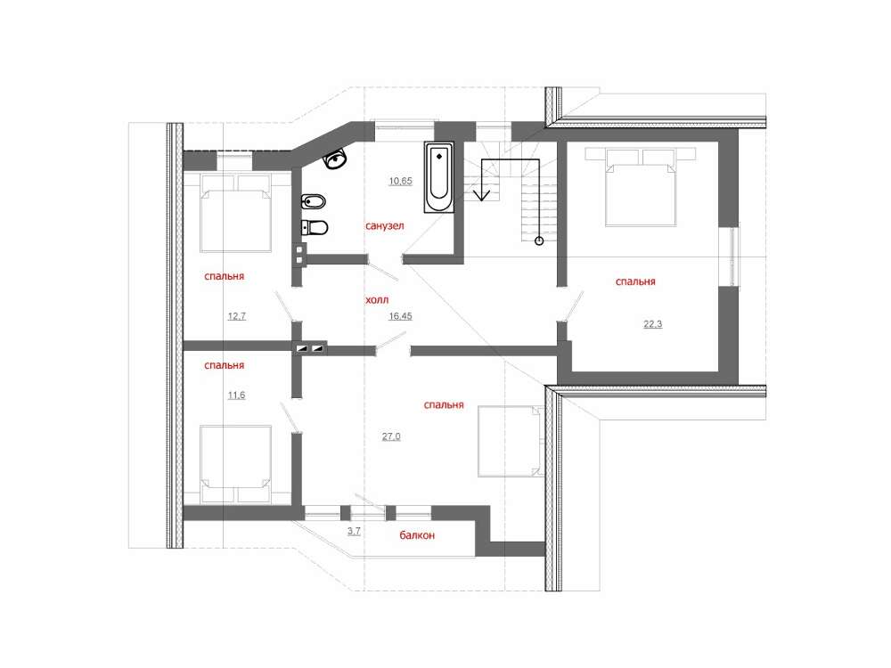 Проект содержит три раздела – Архитектурный, Конструктивный и Инженерный (Водоснабжение, Отопление, Вентиляция, Канализация, Электроснабжение) + Пояснительная записка