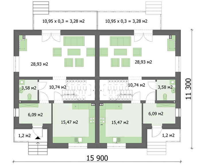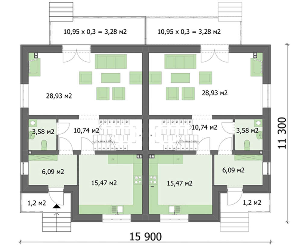 | Dachfläche: | 212.80 м2 |