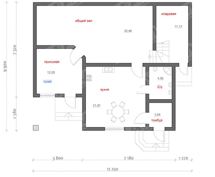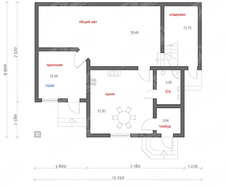 Проект содержит три раздела – Архитектурный, Конструктивный и Инженерный (Водоснабжение, Отопление, Вентиляция, Канализация, Электроснабжение) + Пояснительная записка
